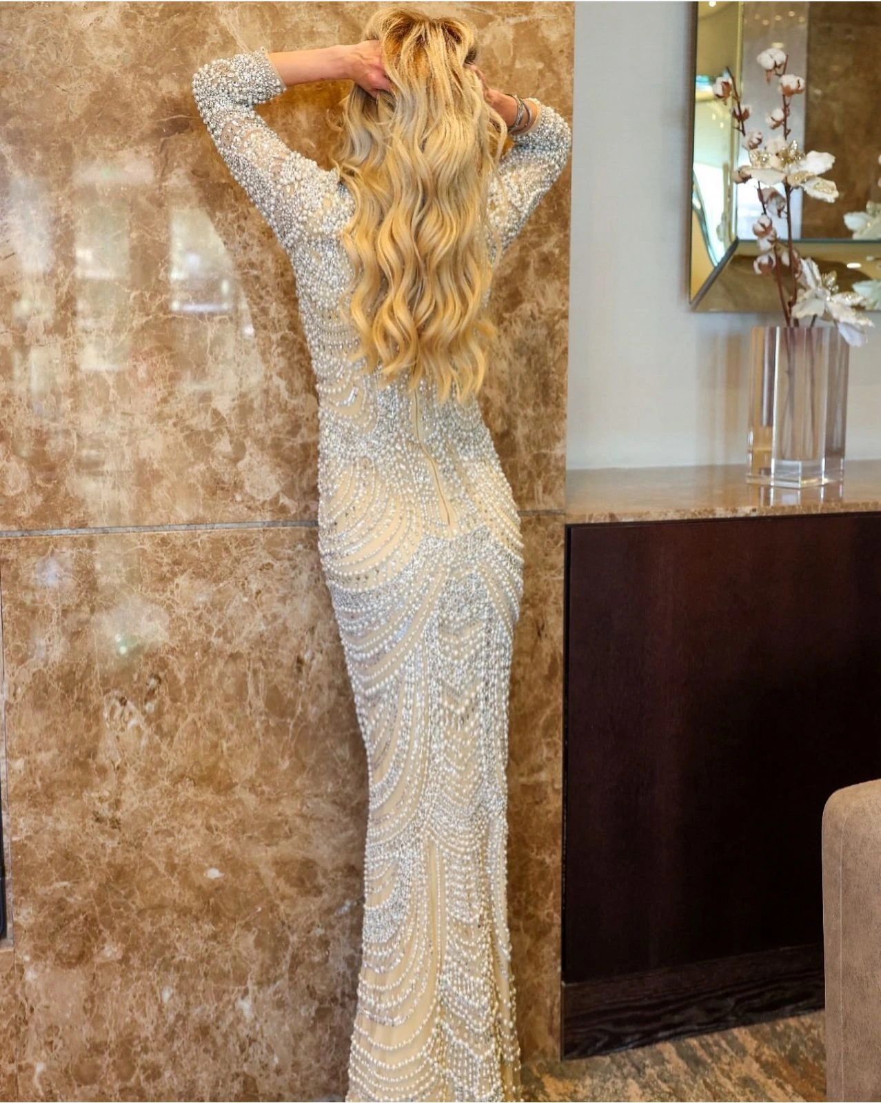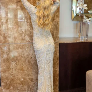 In the glow of candlelit soirées, this dress becomes an ode to timeless elegance with its intricate beadwork cascading like moonlit waterfalls over a soft, shimmering fabric. Its personality is bold yet graceful, commanding attention with a whisper rather than a shout. Crafted from luxurious materials that capture and reflect light, it highlights the meticulous artistry of expert hands. Perfect for grand galas or an evening under the stars, this dress transforms any setting into a tableau of classic beauty and modern allure.